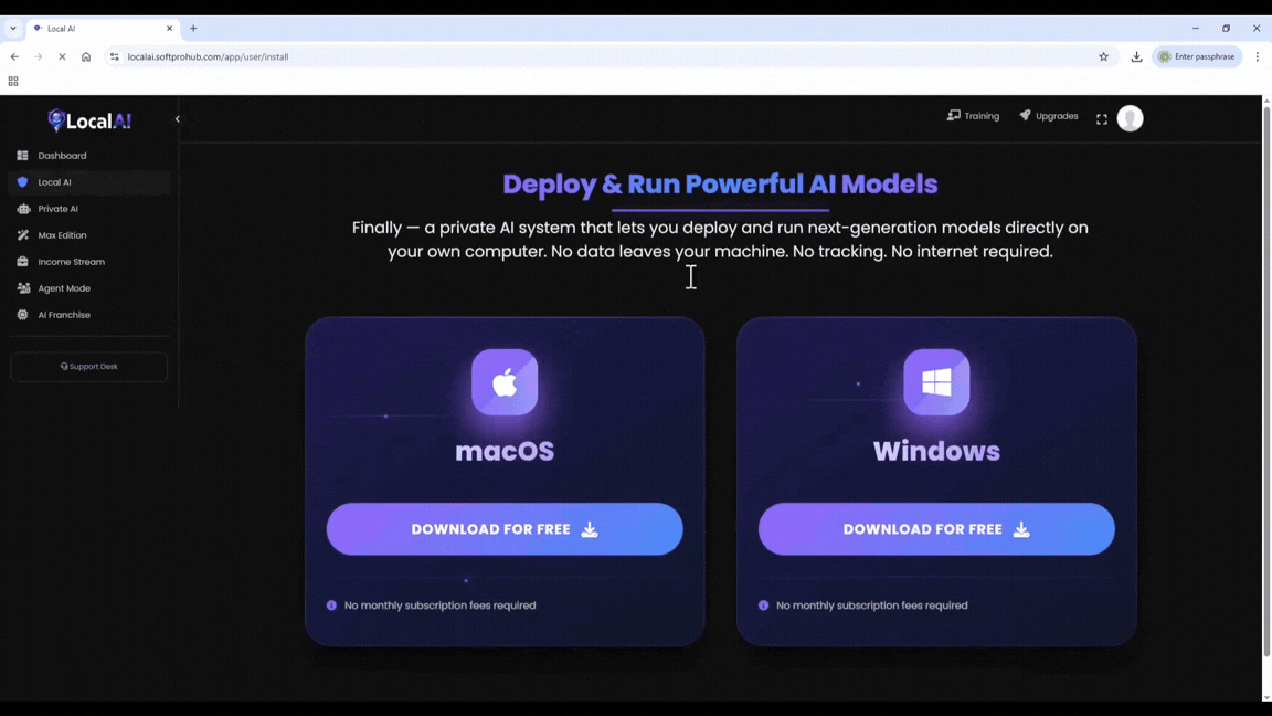 - Install and operate powerful AI models on your own Mac or Windows laptop/desktop